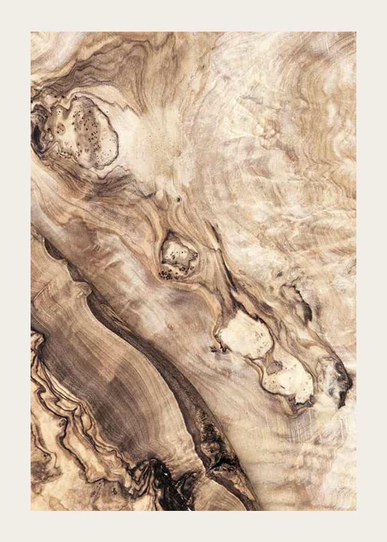 Des formes organiques et un veinage naturel aux tons brun clair et foncé dominent le motif, où les variations de la structure unique du bois se révèlent. Des contrastes et des détails subtils créent une expression intemporelle qui sublime la pièce. Cette affiche s'intègre parfaitement dans les salons comme dans les bureaux et apporte une touche naturelle.