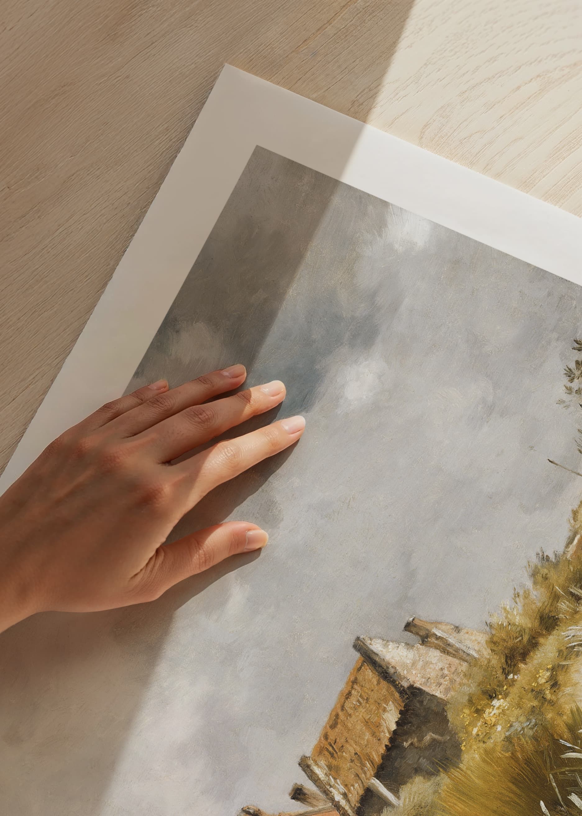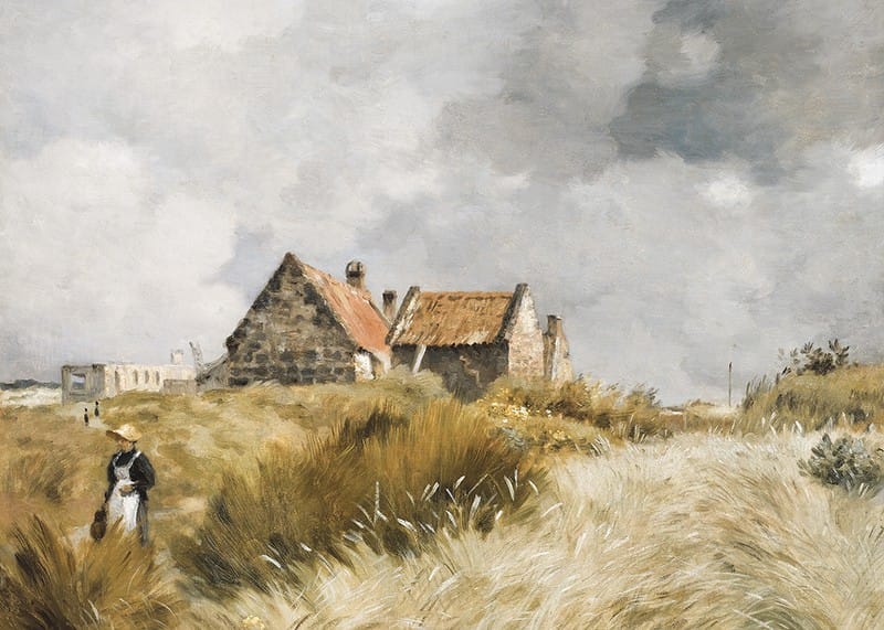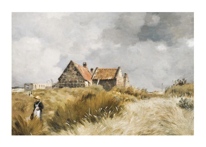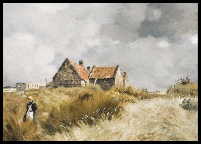 Affiche avec le tableau "Cottage In The Dunes" de l'artiste français Jean-Charles Cazin datant de 1870.
