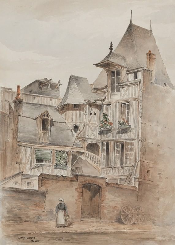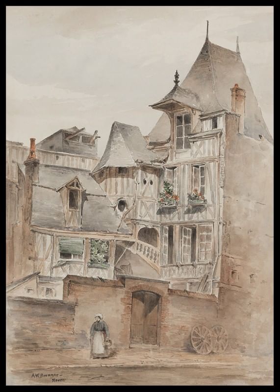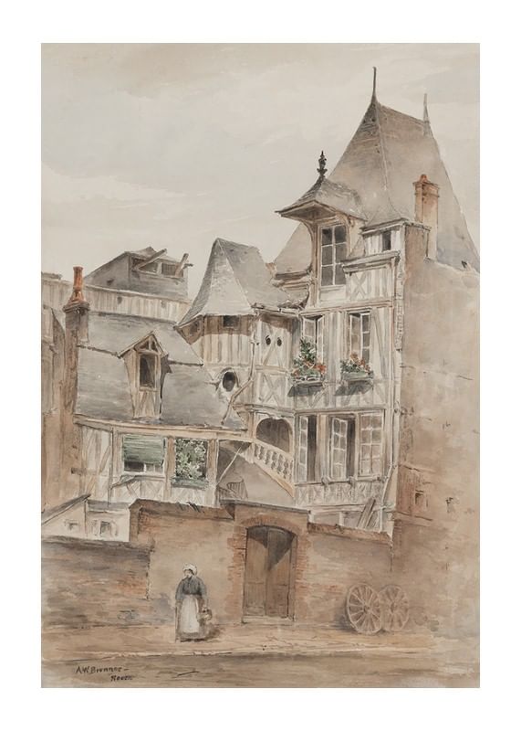Street Scene With Medieval Houses By Arnold W. Brunner