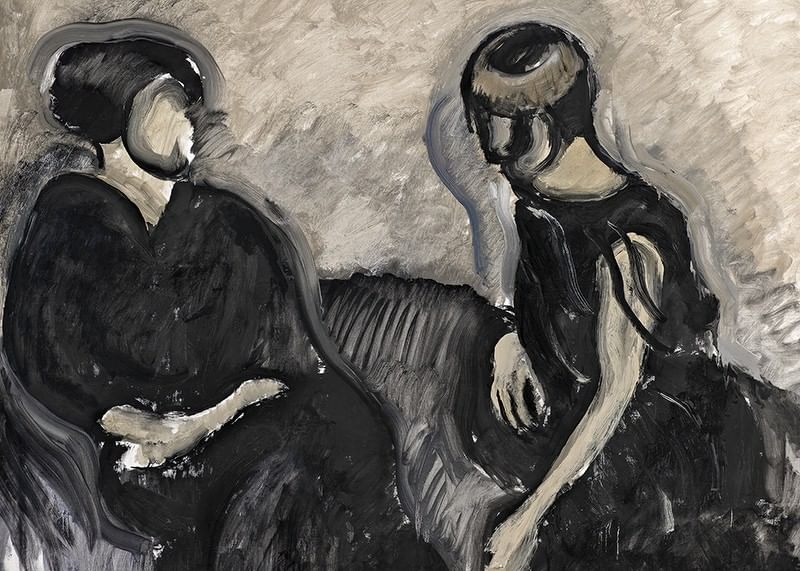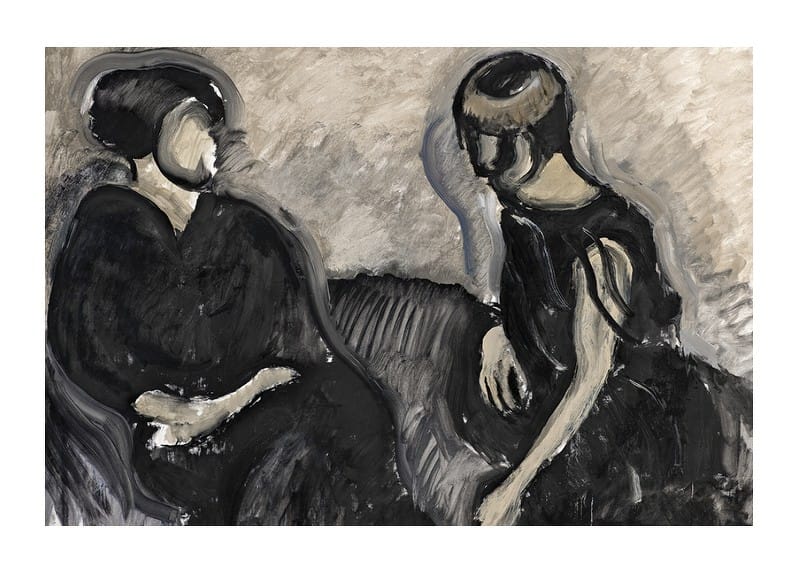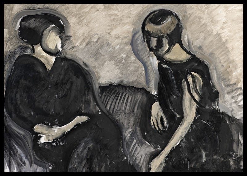 Affiche avec le tableau "Two Ladies" de l'artiste danois Harald Giersing de l'année 1922. Giersing a étudié à l'Académie des Beaux-Arts de Copenhague et s'est fait connaître pour ses peintures de paysages et ses portraits. Son style était impressionniste et il utilisait souvent des couleurs vives et des tons clairs pour créer une image harmonieuse et vive.