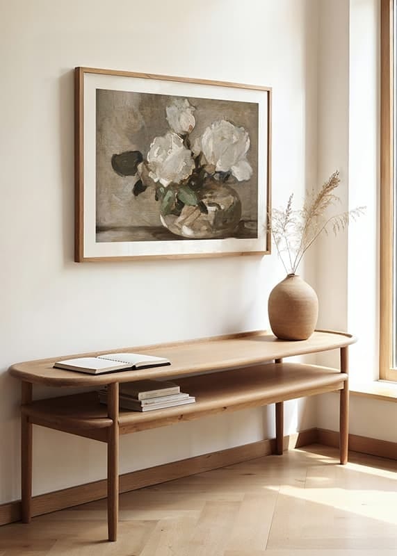 Affiche avec le tableau "Blumenstilleben" de l'artiste allemand Alexander Max Koester de l'année 1925-1926. Le travail de Koester a été exposé dans les plus grands musées du monde, dont le Metropolitan Museum of Art, le Louvre, le Prado et la National Gallery of Art. Ses peintures font également partie de collections privées et ses œuvres se sont vendues à des prix élevés lors de ventes aux enchères.