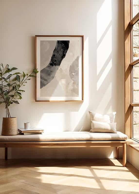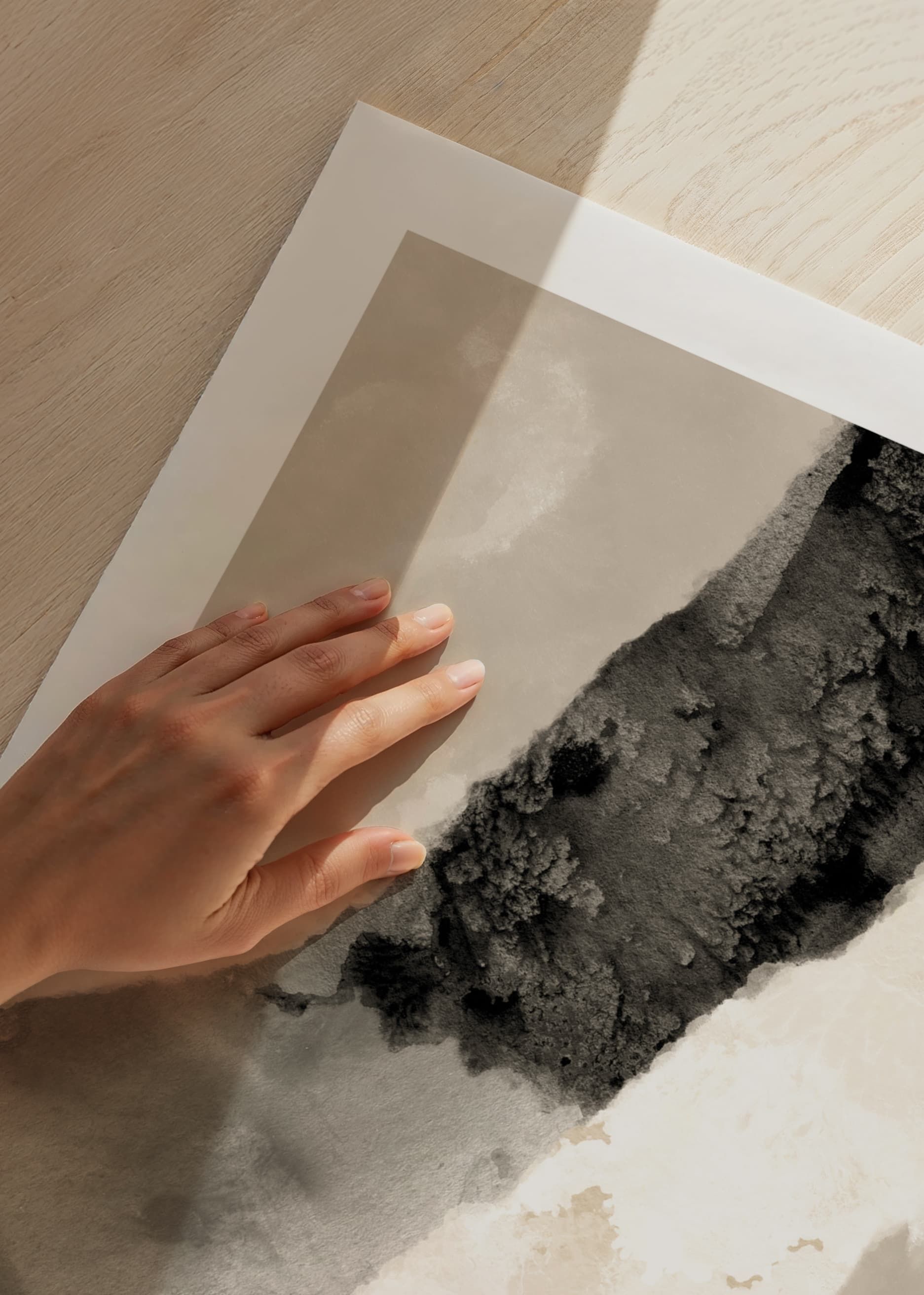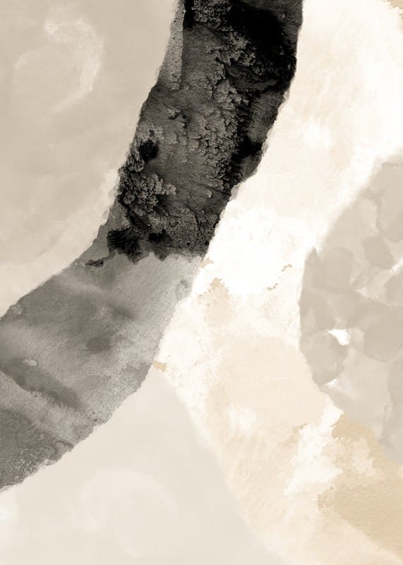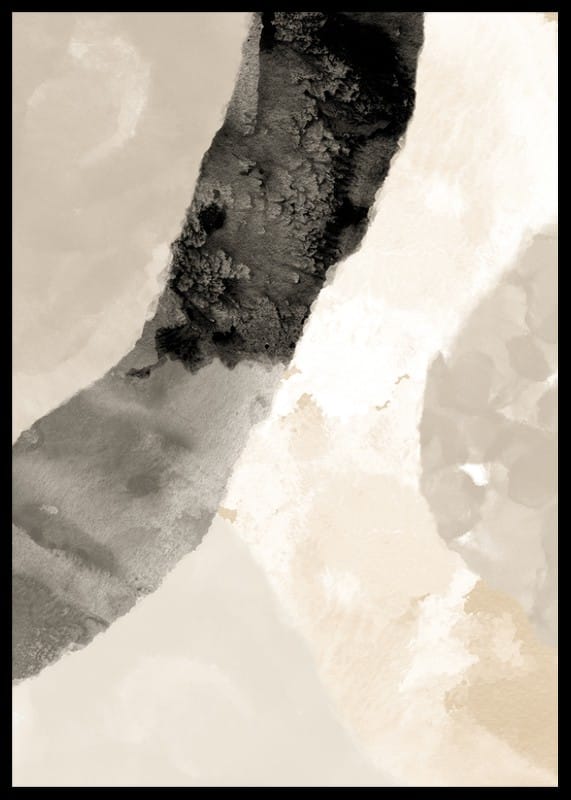 Des formes douces et des superpositions d'aquarelles beiges, marron et noires créent un motif abstrait aux textures et nuances variées. Des champs de couleurs irréguliers se rencontrent pour créer une impression de sérénité. Cette affiche, élégante et moderne, s'intègre parfaitement dans un salon, un couloir ou un bureau, pour une touche artistique subtile.