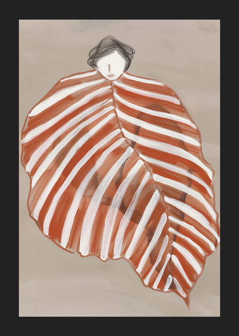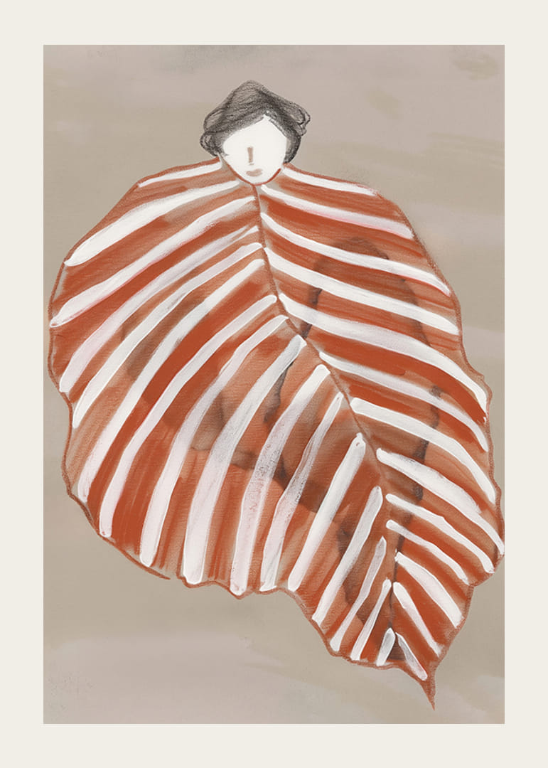 Découvrez la magie de l'art avec cette affiche unique, où une figure s'enroule dans une feuille, exprimée dans des tons de terre chauds et des lignes douces. L'image capture un sentiment de sécurité et l'étreinte de la nature, parfaite pour transformer votre maison en un lieu de tranquillité et d'inspiration.